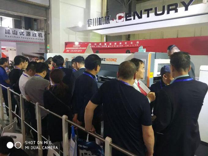 展會來到瞭(le)上午的十點鍾,大波參(cān)觀人群到達信川展廳(展位号:3A215),觀(guān)摩我們的MWZ1450NZ二代模切機(jī)。
