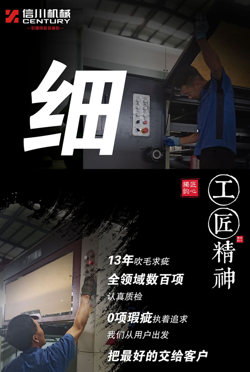 信川機械13年專注印後模切機領域,深入挖掘行業痛點,不斷開創(chuàng)新,率先推出多款機型,诠釋瞭(le)信川人專注精一、開拓創(chuàng)新的工匠精神。